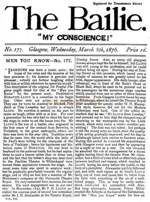 Left - Horatio Lloyd image from 'The Bailie' No.177 Glasgow, Wednesday March 8th 1876, - Courtesy James Francis.