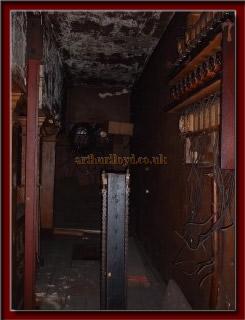 Above -Inside the Minstrel Gallery - showing a plethora of ancient switches and the Stringfellow lighting equipment protruding through the floor