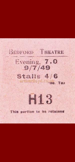 Right - A selection of Programme Covers and Ticket Stubs for the Bedford Theatre - Courtesy Peter Charlton and Martin Clark.