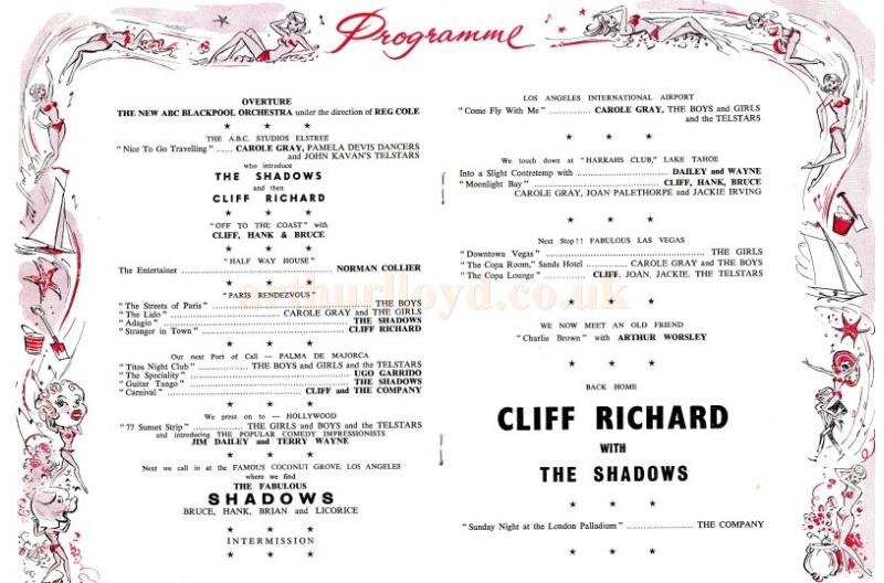 Right - An image of the ABC Theatre, Blackpool on its opening with Cliff Richard and the Shadows in 'Holiday Carnival'.