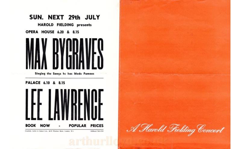 Right - A Variety Poster for the Blackpool Palace Theatre for the 14th of January 1952 - Courtesy Gillian Bell whose father was part of the double act Syd and Max Harrison featured on the Bill.