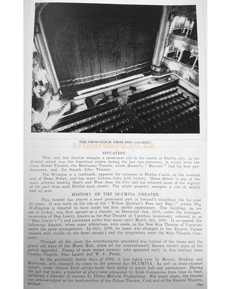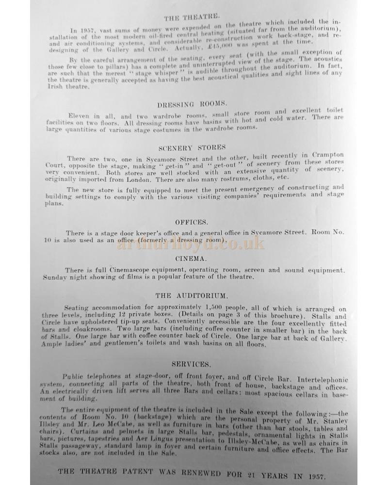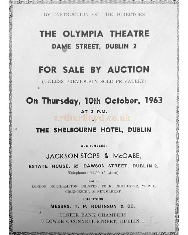 Above - The Sale Brochure for the Olympia Theatre, 10th of October 1963 - Courtesy John Findlater, whose father, grandfather and great granduncle were chairmen of the Theatre from 1897-1963.