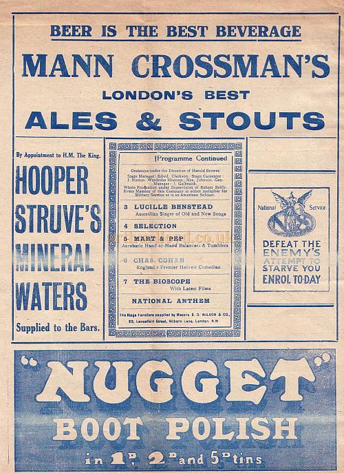 Above - Programme for 'High Explosives' at the Olympia Shoreditch 1917